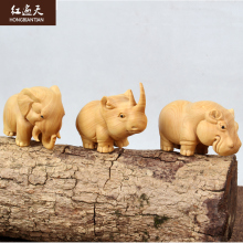 非洲三宝小叶黄杨木雕手把玩件家居汽车摆件犀牛河马大象动物雕刻