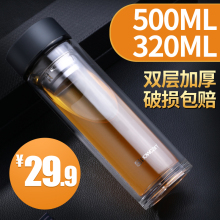 大容量玻璃杯双层便携水杯创意带盖过滤办公杯子男女耐热车载茶杯