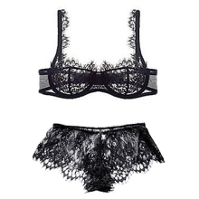 包邮!法式轻奢 精致睫毛蕾丝超薄文胸杯+平角裤套装