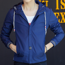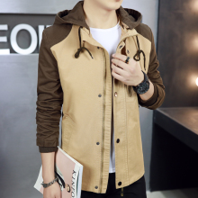 2016新款男士纯棉连帽春季夹克上衣拼接潮流帅气外套男青年外衣服