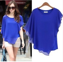 五色五码 欧美通勤T恤衫荷叶边短袖雪纺衫上衣女装蝙蝠衫