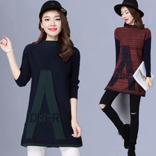 2016秋冬新款大码显瘦长袖中长款套头女毛衣打底裙旗袍针织连衣裙