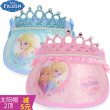 迪士尼儿童太阳帽女童帽子公主皇冠小女孩空顶遮阳帽防晒帽夏季潮