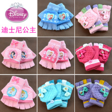 迪士尼儿童手套女童公主毛线五指翻盖半指魔术秋冬保暖冰雪学生