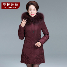 亚伊若菲中老年羽绒服女中长款2016妈妈冬装老年人大码奶奶装外套