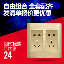 120型开关插座面板金色拉丝面板香槟色十孔插座二位五孔插座