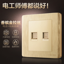 家用86型墙壁开关插座电源面板 30香槟金拉丝电话+电脑网络线座机
