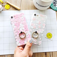 樱花iphone7手机壳苹果7plus指环支架超薄浮雕6s挂绳保护套外壳