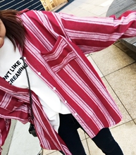 2017春装新款韩版宽松长袖条纹衬衫女 韩范女装中长款衬衣女外套