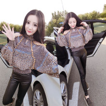 实拍2016秋冬季性感女装夜店套装时尚露肩长袖蝙蝠碎花雪纺上衣潮