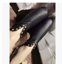 2016初秋新款韩版开叉铆钉百搭个性女裤潮加大显瘦修身打底裤皮裤