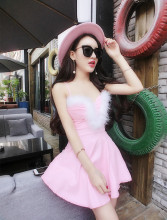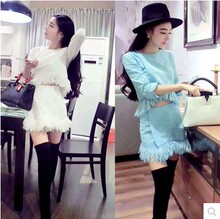 2016秋季新款韩版时尚流苏裙露肩羽毛连衣裙女毛毛中长打底裙上衣
