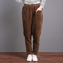秋季新款纯色灯芯绒哈伦裤宽松松紧腰长裤女休闲裤复古大口袋大码