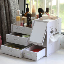 DIY桌面收纳盒 木质化妆盒 创意化妆品收纳盒 带抽屉桌面整理盒
