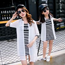 亲子装夏装2017新款夏季连衣裙女童韩版条纹裙子长款防晒衣母女装