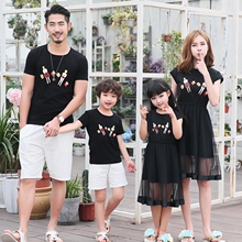 亲子装夏装2017新款一家三口全家装家庭装母子装四口短袖T恤套装