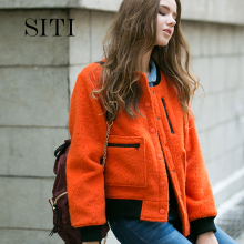 Siti Selected2016新款橘红色棒球毛呢外套女短休闲学院风呢大衣