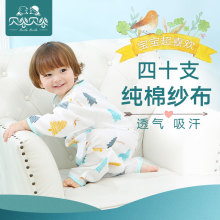 贝谷贝谷婴儿睡袋夏季薄款纯棉春秋纱布睡袋三层儿童宝宝分腿睡袋