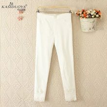 加肥加大码女装夏装胖mm高弹力蕾丝花边长裤打底裤胖妹妹显瘦裤子