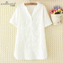 大码女装胖mm夏装白色棉麻t恤女中长款短袖上衣宽松胖妹妹打底衫