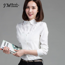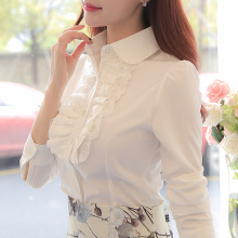 白衬衫女韩范花边荷叶边雪纺衬衣女长袖百搭修身打底衬衫职业装