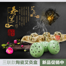 陶瓷三联随身灸妇科宫寒艾灸盒防烫艾灸器具艾灸罐艾柱温灸熏艾器