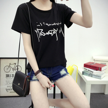 2017夏装韩版休闲字母半袖大码百搭宽松棉质短袖t恤女式学生班服