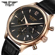 品度正品男表六针石英表计时码表多功能防水真皮带男士手表