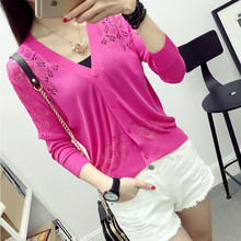 春装新款2017针织衫女装薄款外搭镂空毛衣长袖短款开衫披肩小外套