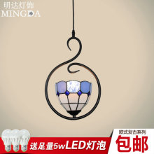 欧式单头吊灯美式餐厅小吊灯 复古铁艺书房阳台LED灯简约卧室灯具