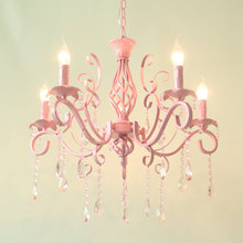 欧式田园吊灯水晶蜡烛创意餐厅 卧室灯温馨浪漫女孩儿童房公主粉