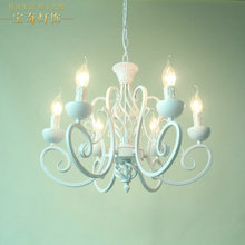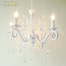 欧式简约白色吊灯公主灯卧室灯粉色淡蓝田园灯饰地中海铁艺蜡烛灯
