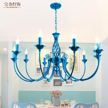 地中海灯饰客厅餐厅卧室温馨浪漫 创意个性简约铁艺蜡烛灯蓝色灯