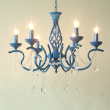 地中海蓝色水晶吊灯田园风格客厅餐厅灯主卧室 创意铁艺蜡烛吊灯