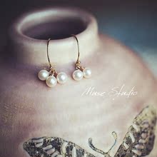 Muse家 美国直邮进口14K注金 天然淡水珍珠3加2不对称耳钉女