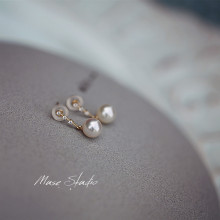 MUSE 气质深灰黑 手工定制 美国14k包金施家大珍珠耳钉 闪钻耳环