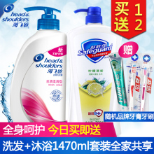 海飞丝洗发水丝质柔滑+舒肤佳沐浴露柠檬家庭洗发水沐浴露套装