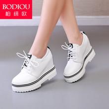 厚底内增高女鞋 2016春新款松糕休闲鞋 真皮镂空罗马鞋超高跟单靴
