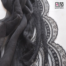 优雅黑色真丝围巾 蕾丝拼接桑蚕丝丝巾旗袍披肩 高档真丝围巾丝巾