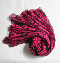 玫红豹纹围巾 高档真丝围巾丝巾 桑蚕丝正品日系春秋女长款披肩