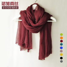纯色褶皱高档真丝丝巾 桑蚕丝长款防晒披肩围巾两用 女士新款多色