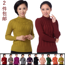 中老年女装妈妈装针织衫冬装打底衫加厚毛衣半高领羊毛衫长袖套头