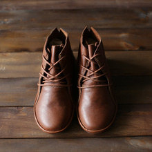 记忆中的羊皮鞋。烁烁原创手工缝制柔软真皮女靴 低跟舒适马丁靴