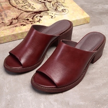 欧美2017新款真皮粗跟女拖鞋牛皮休闲高跟一字拖女鞋手工凉拖鞋女