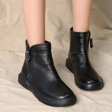 欧美真皮厚底春秋女靴百搭休闲女单靴牛皮圆头女短靴牛筋底马丁靴