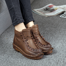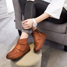 手工真皮复古女短靴2016秋新款民族风软底女靴牛皮厚底休闲马丁靴