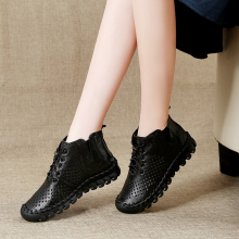 真皮软底镂空女靴春夏洞洞短靴牛皮平底马丁靴圆头厚底休闲女单靴