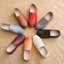 夏女鞋真皮软底女凉鞋镂空休闲平底套脚洞洞鞋头层牛皮防滑孕妇鞋