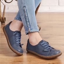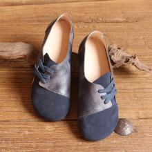 真皮软底休闲鞋学院风复古文艺女鞋手工牛皮圆头女单鞋系带平底鞋