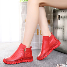 真皮软底个性休闲短靴牛皮厚底女单靴2016秋新款圆头平底红色女靴